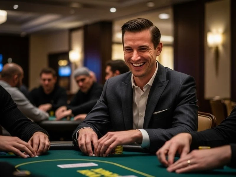 Vivamax Philippine Smiling Poker Player Holding Chips winning moment